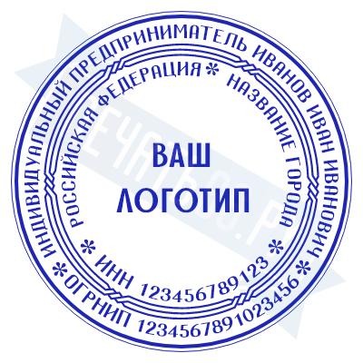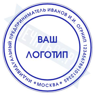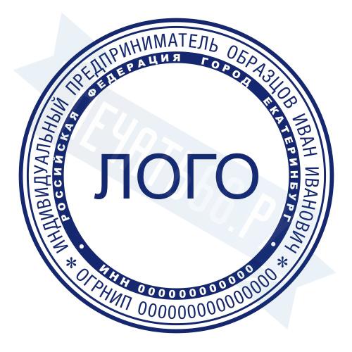 - Печать ИП с логотипом на металлической оснастке Компакт Кристалл, 40мм по цене 5375 рублей и еще 68 видов печатей с логотипом