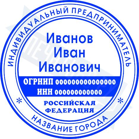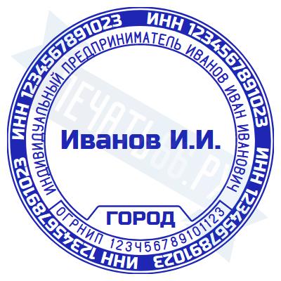 Стандартная печать ИП на автоматической оснастке Trodat Printy 4642 с гербом