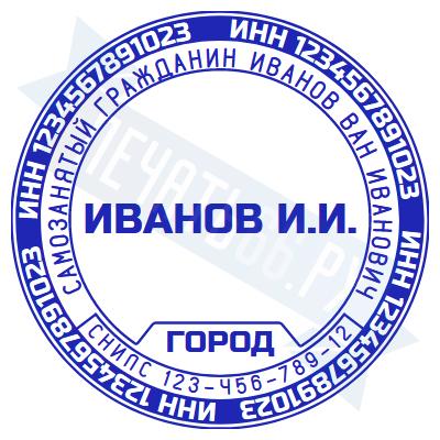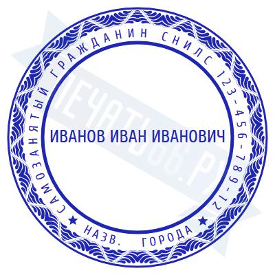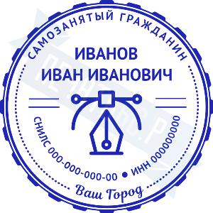 - Печать самозанятого на автоматической оснастке GRM 46040 (R40) plus, 40мм по цене 1304 рубля и еще 67 видов печатей для самозанятых